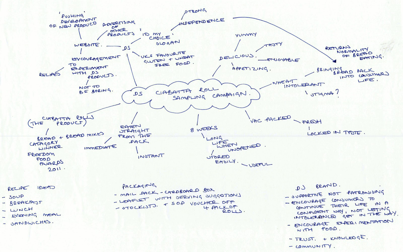 Hello! Some work from december for you, the brief was basically designing a mail pack containing a sample bread roll to those registered and gluten intolerant. Here's the process i went through from start to end. I produced scamps and then work some of these up into finished layouts :)